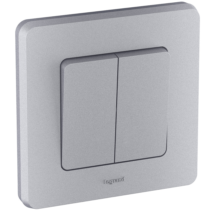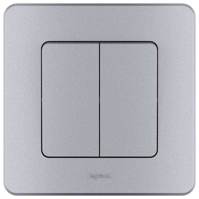 Выключатель двухклавишный 10AX-250В, (Алюминий), Legrand INSPIRIA
