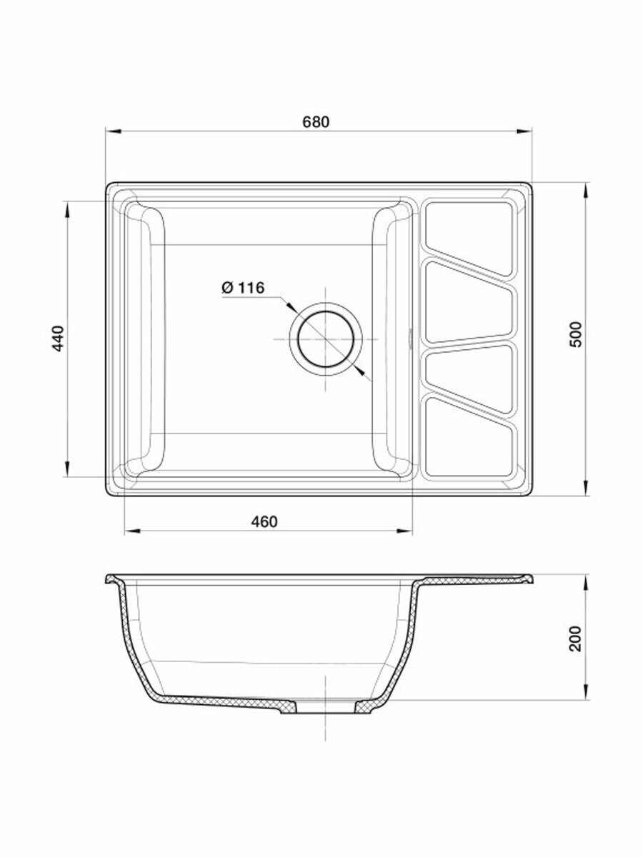 Мойка кухонная прямоугольная Granfest Vertex (V-680L бежевый)