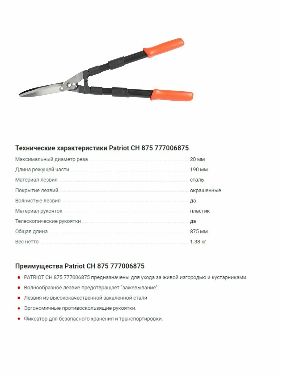 Ножницы для живой изгороди Patriot СН 875 777006875