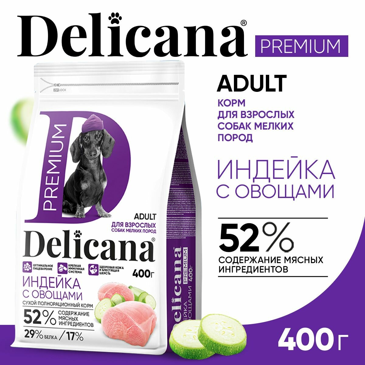 Купить Корм сухой Delicana для собак мелких пород Индейка с Овощами 400 гр