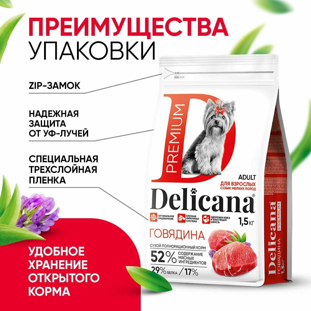 Купить Корм сухой Delicana для собак мелких пород Говядина 1,5 кг