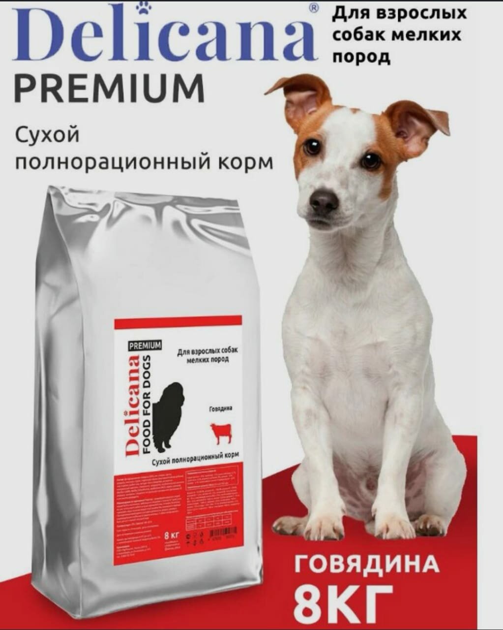 Сухой корм Delicana для собак мелких пород, говядина 8 кг