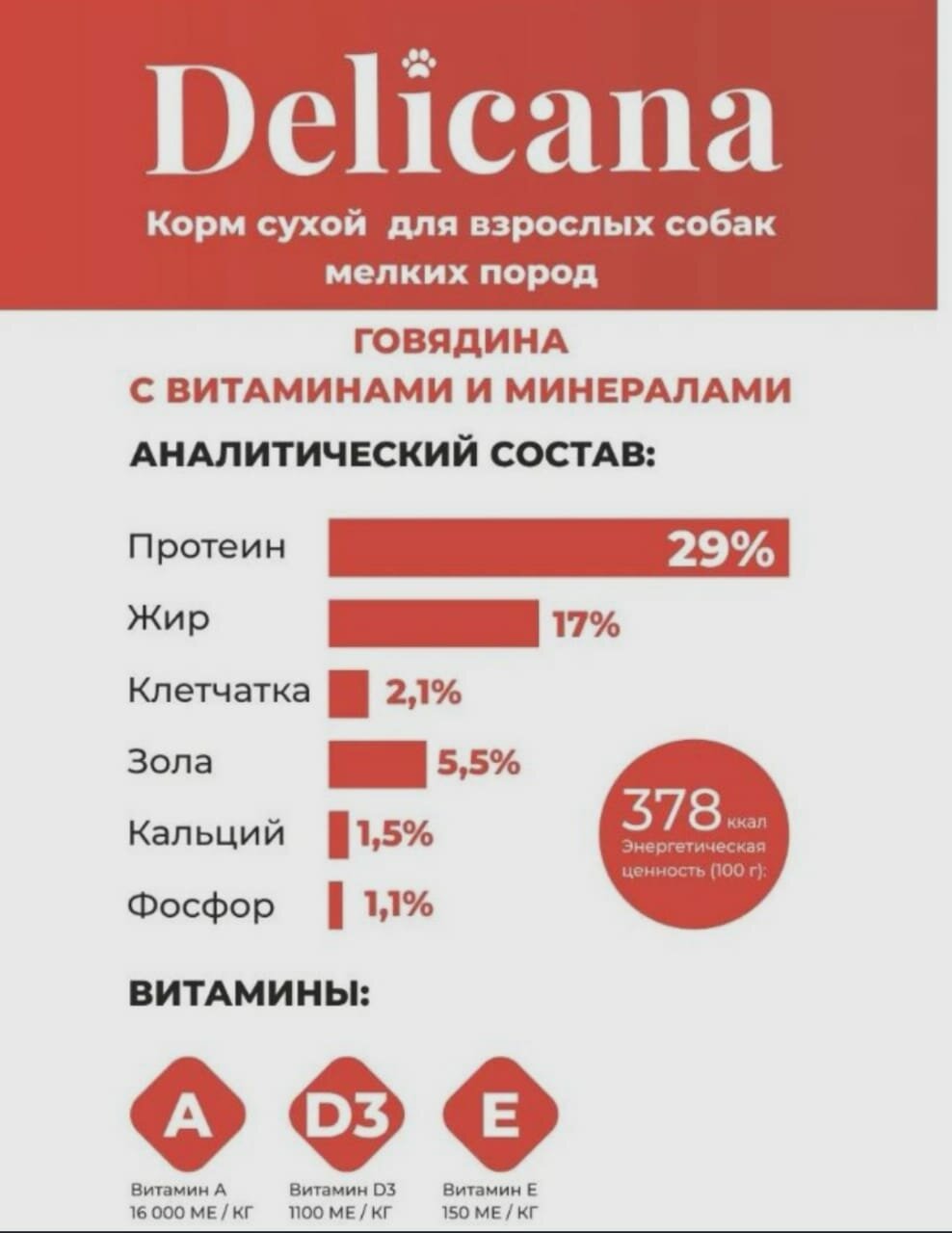 DELICANA Корм сухой для собак мелких пород Говядина с Овощами, витаминами минералами микроэлементами 1,5 кг