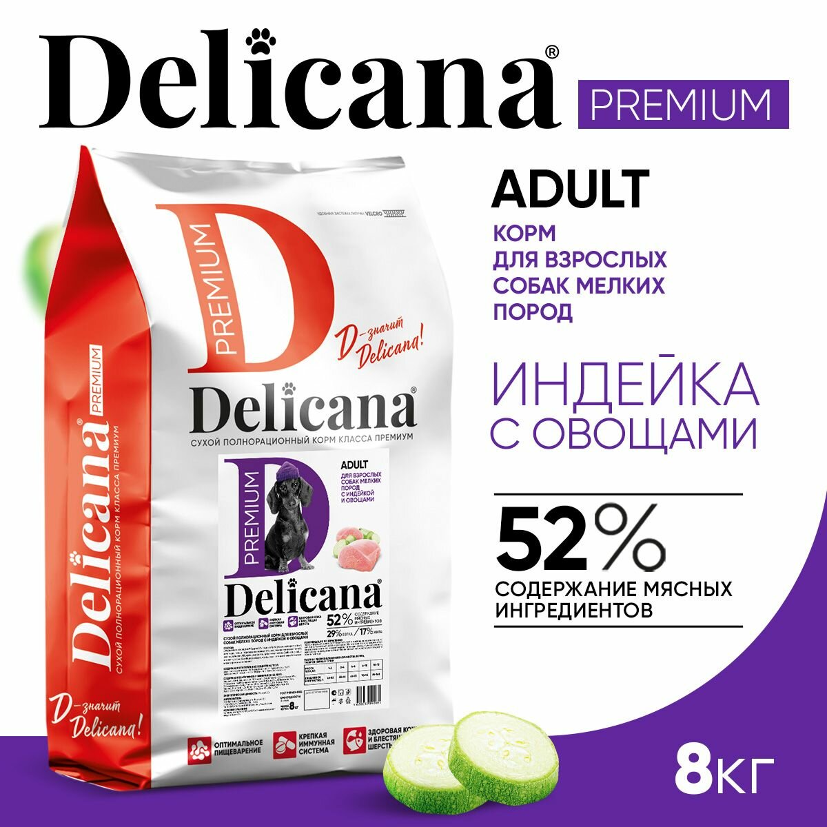 Купить Корм сухой Delicana для собак мелких пород Индейка с овощами 8 кг