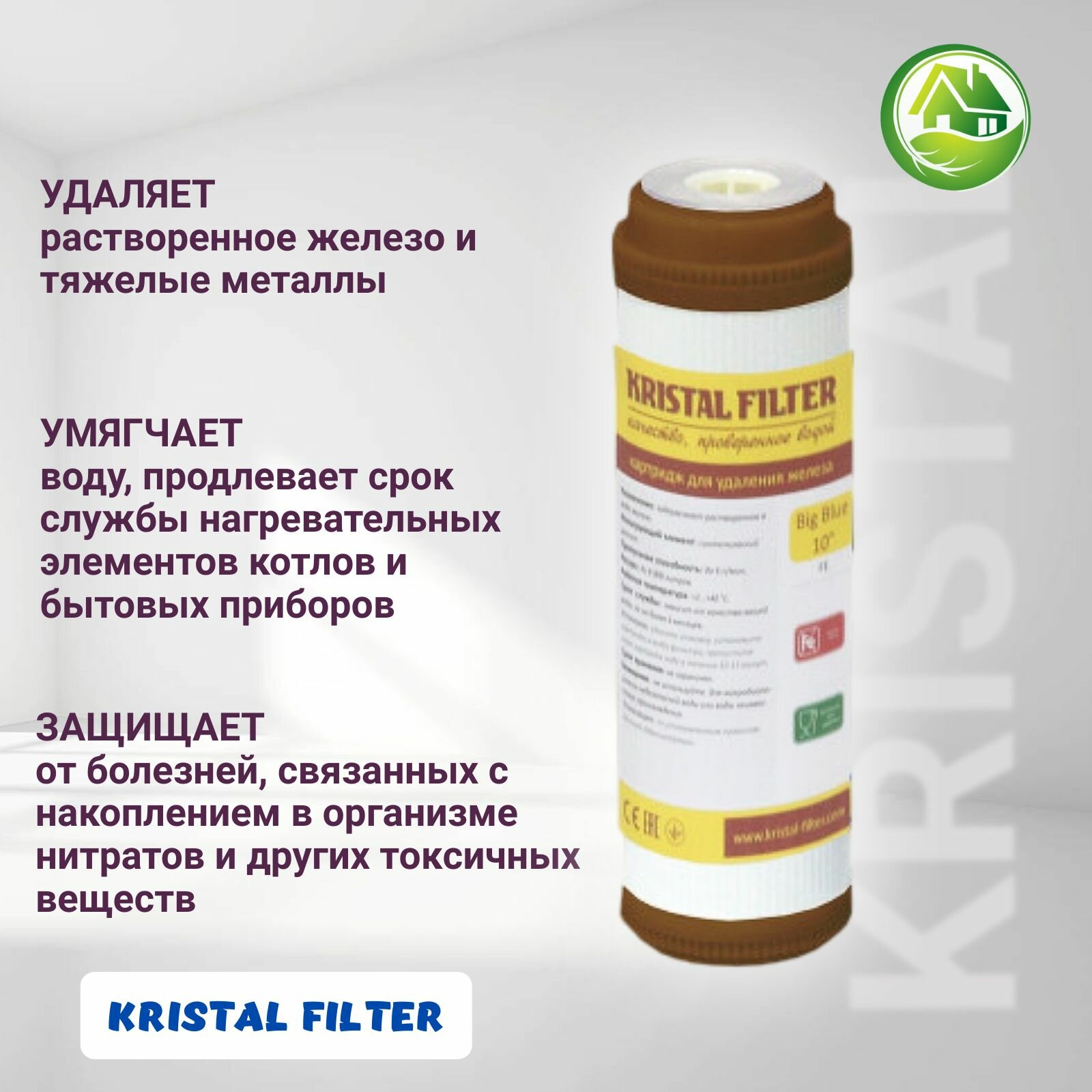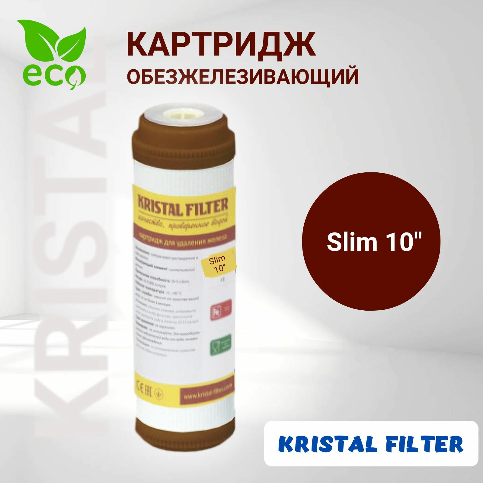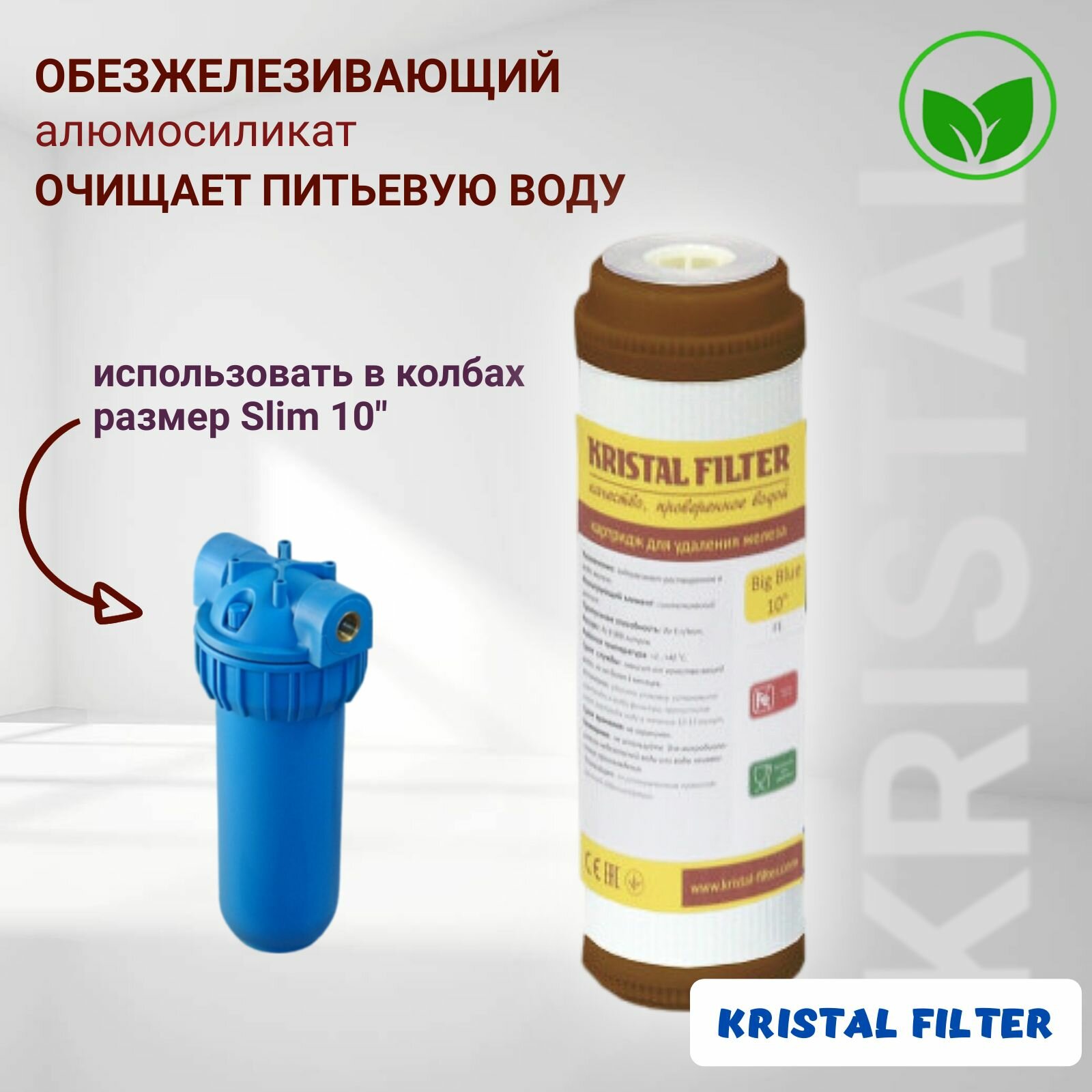 СохранитьКартридж для фильтра воды, обезжелезивающий, Slim 10, KRISTAL FILTER. Для магистрального фильтра. FE интересное: