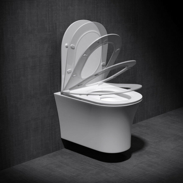 Унитаз подвесной Ceramalux безободковый с ультратонкой быстросъемной крышкой Белый 2617E