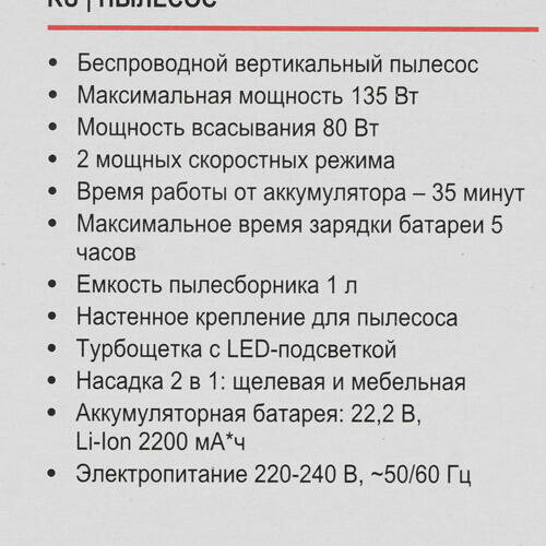 Пылесос вертикальный беспроводной Brayer BR4261 135Вт контейнер 1л