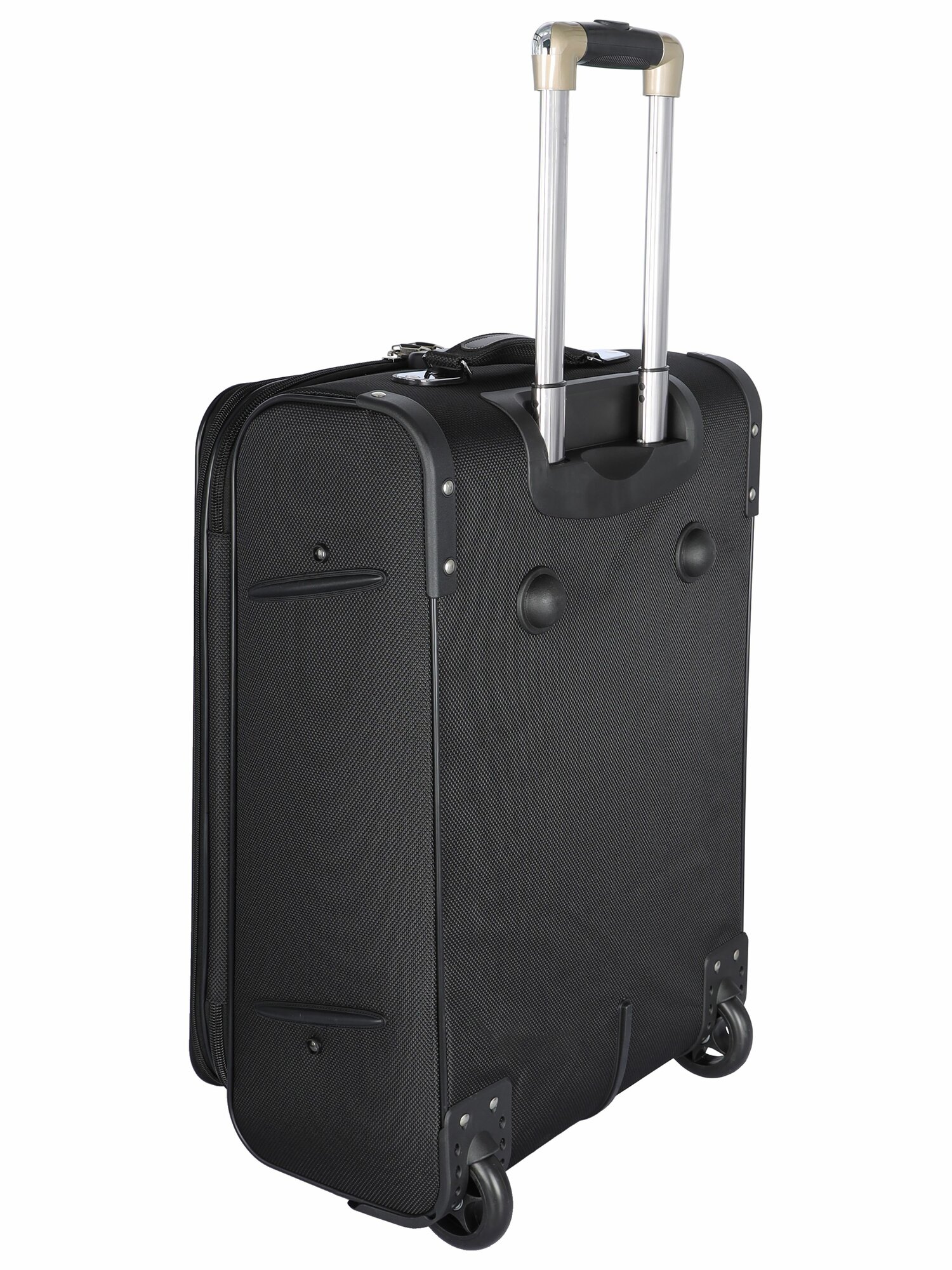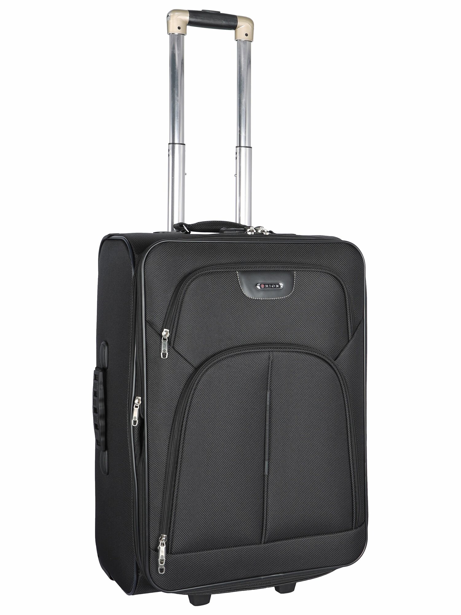 Чемодан Рион+ (RION+) R411, Ткань, 61 см, 52+13 литра, 2 колеса, M (56-70 см), усиленный до 25кг, черный