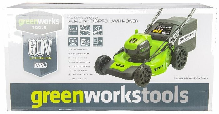 Газонокосилка аккумуляторная GREENWORKS GD60LM51SP, 60V, 51 см, бесщеточная, без АКБ и ЗУ