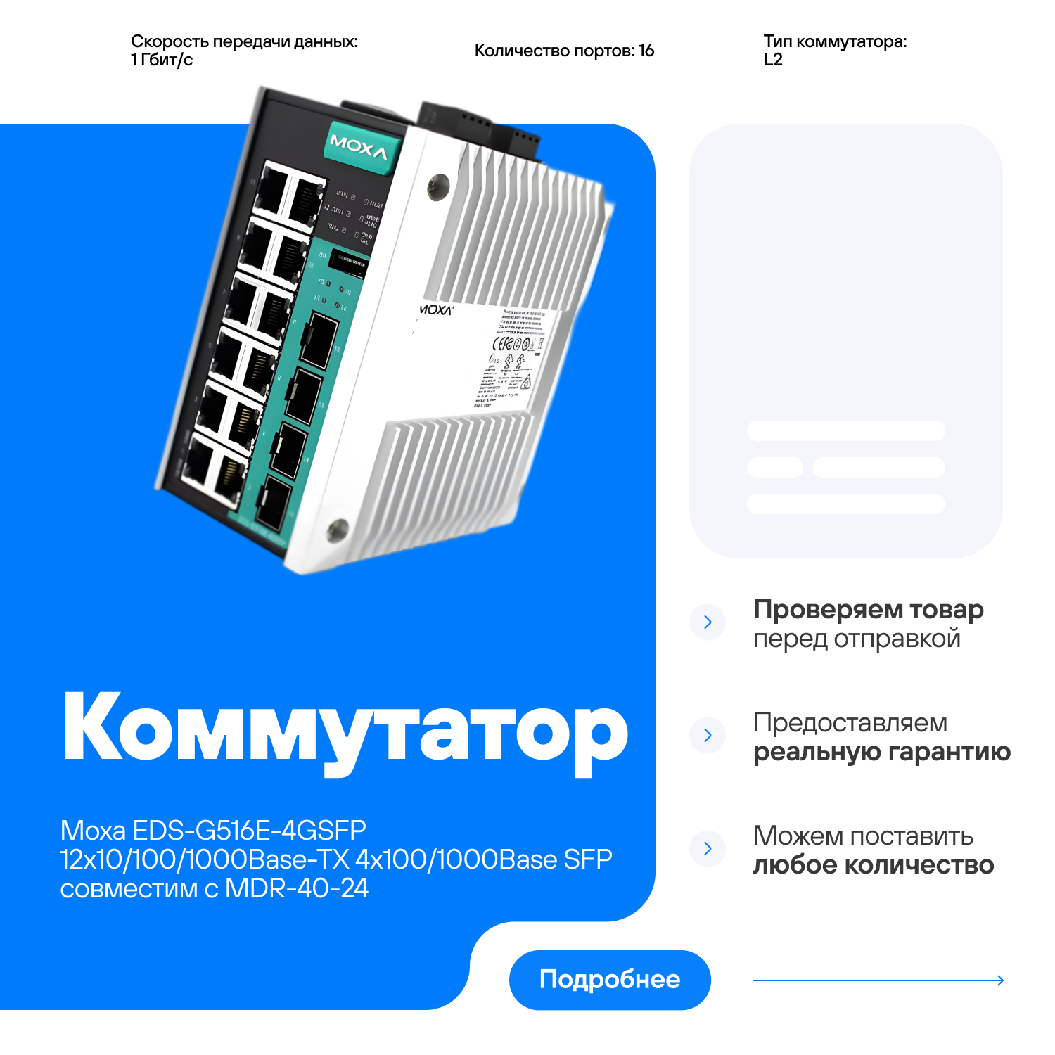 Коммутатор Moxa EDS-G516E-4GSFP 12х10/100/1000Base-TX 4х100/1000Base SFP интересное: