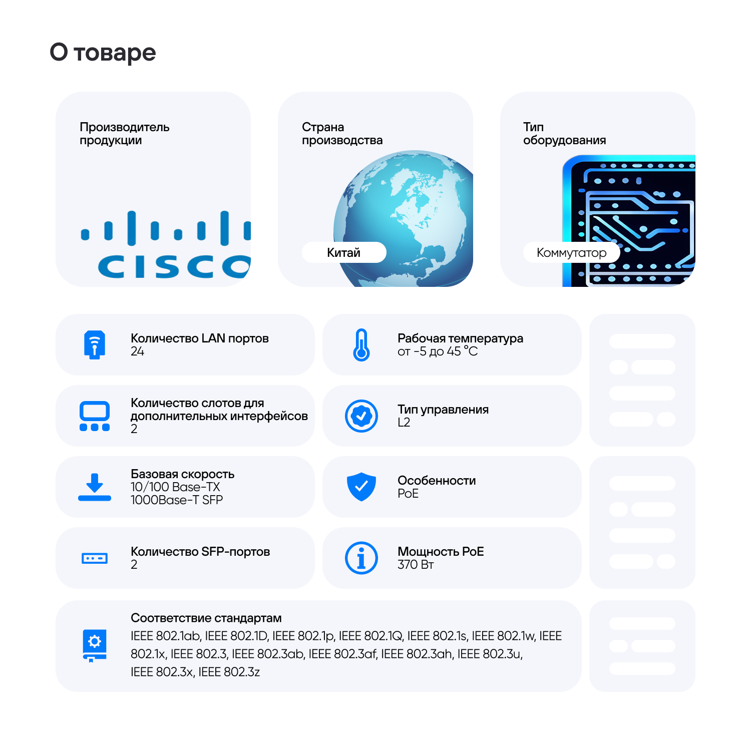 Коммутатор CISCO WS-C2960-24PC-L 24х100Мбит/с РоЕ 2x10/100/1000Base-T/SFP интересное: