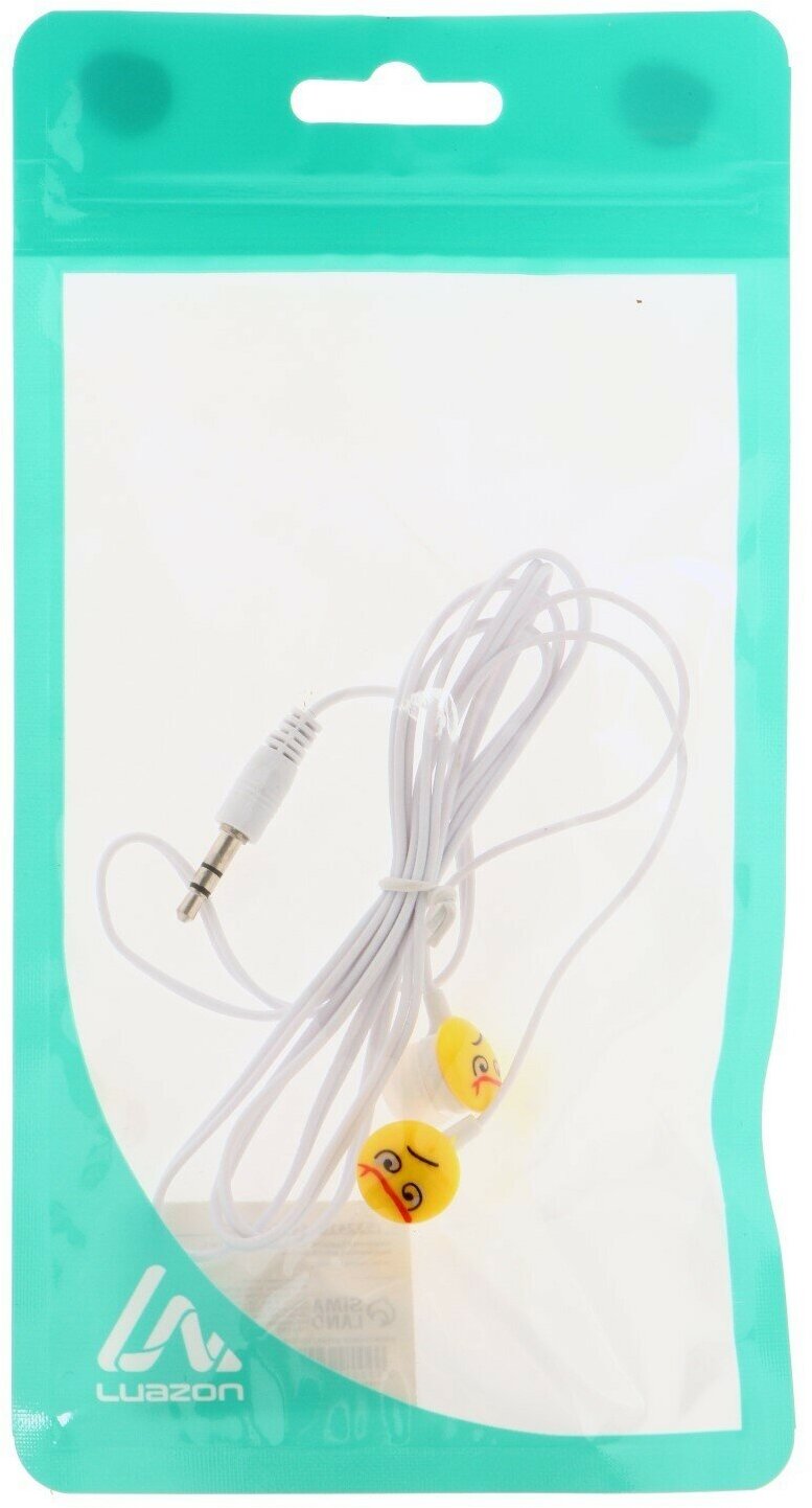Наушники Luazon "Смайлики" LN-1, вакуумные, желто-белые 1532416 интересное: