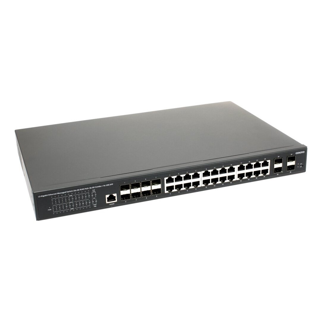 Купить Коммутатор/ OSNOVO Управляемый L3 коммутатор Gb Ethernet на 16xGE RJ-45 + 8xGE Combo (RJ-45 + SFP) + 4x10G SFP+ Uplink. Уровень управления L3 (Full managed), 19" крепление в комплекте. Встроенная грозозащита 3kV.