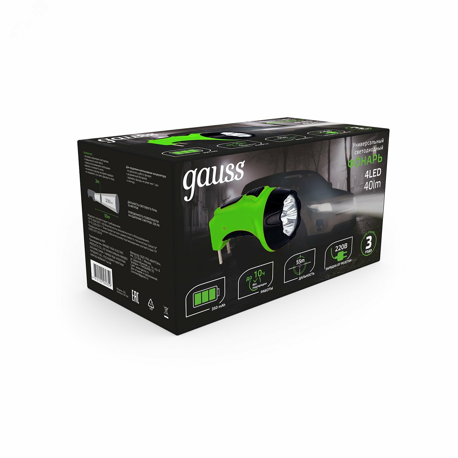 Фонарь ручной Gauss модель GFL104 4LED 40lm lead acid 350mAh LED 1/12/72