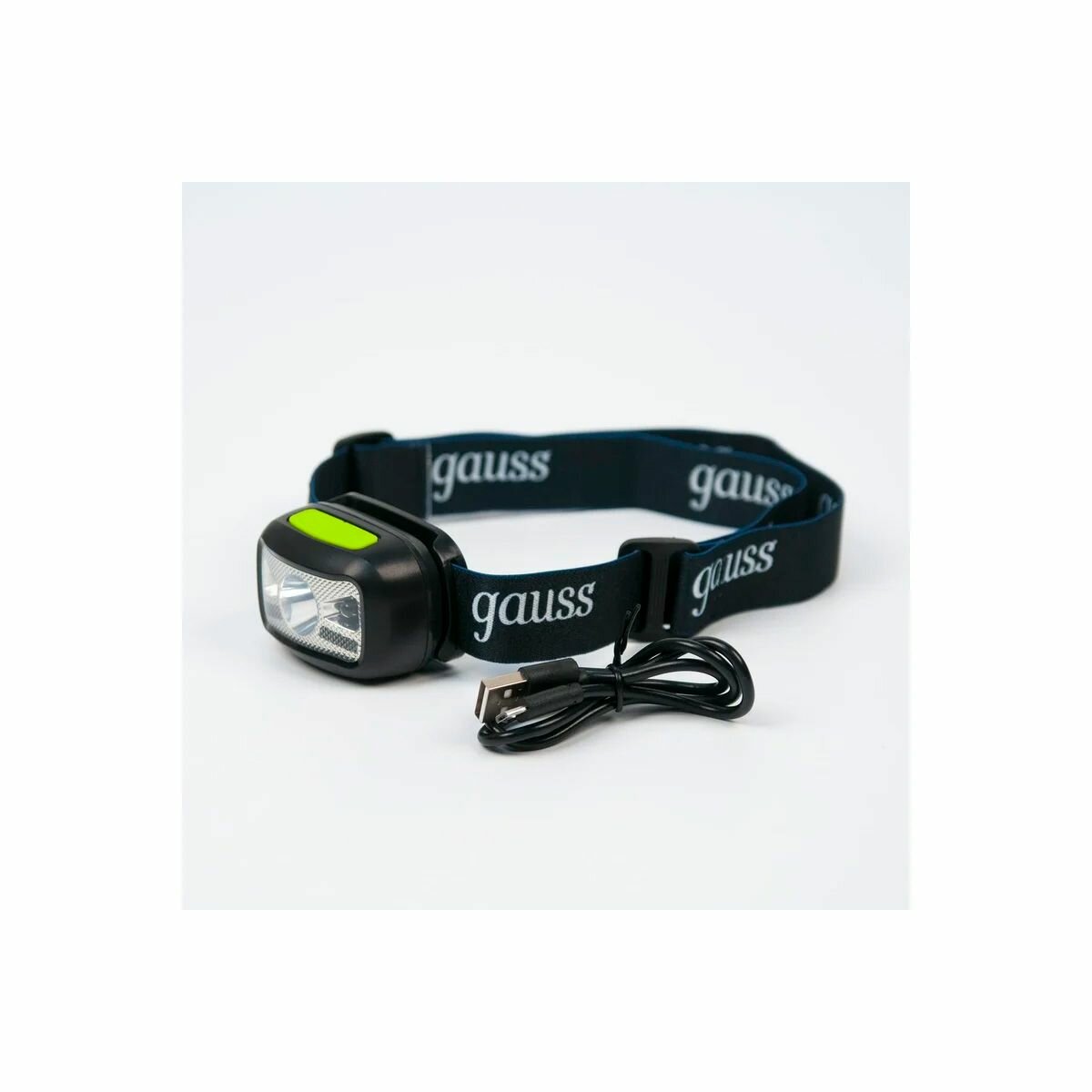 Фонарь налобный Gauss модель GFL402 3W 220lm Li-ion 1200mAh LED 1/10/100