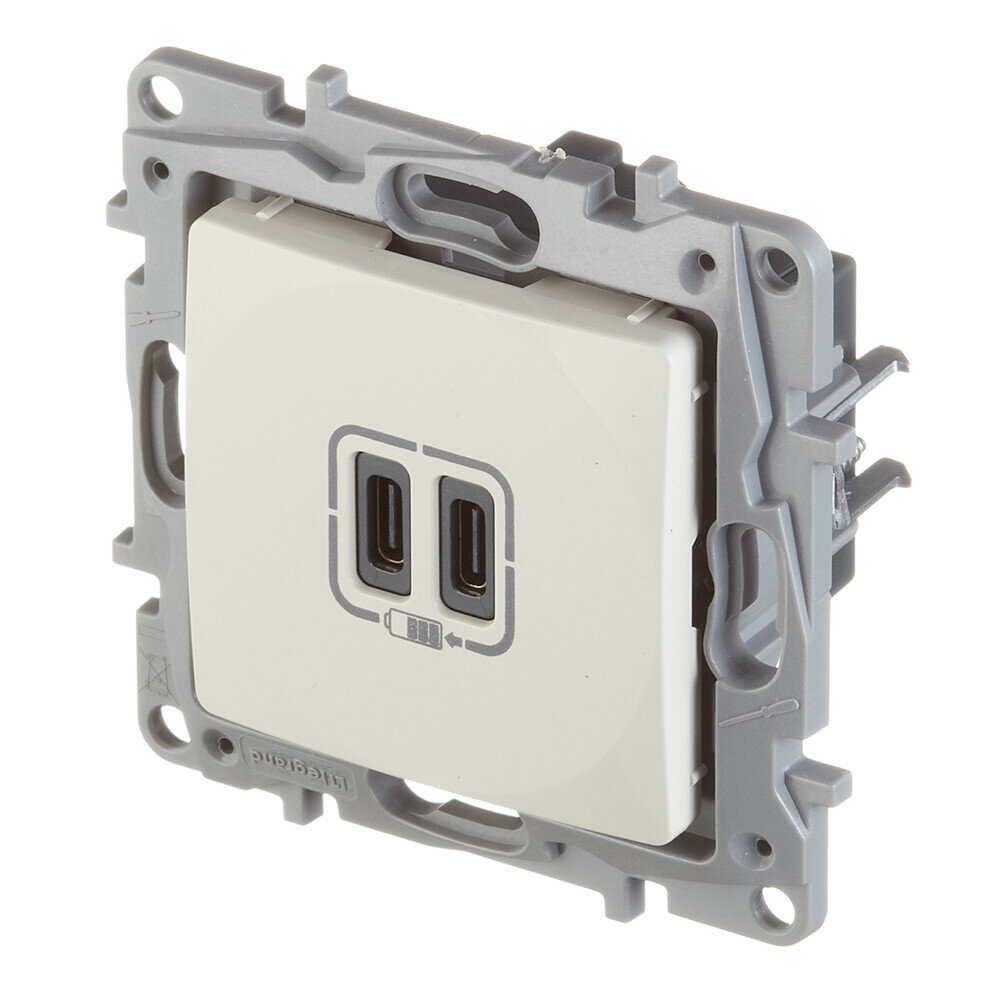 Зарядное устройство с двумя USB-разьемами тип C-тип С 240В/5В 3000мА - Etika - Цвет Слоновая кость , LEGRAND 672335 (1 упак)
