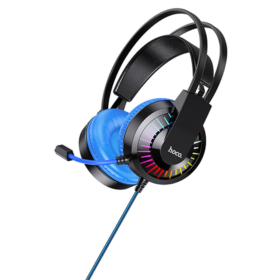 Купить Игровые наушники с микрофоном HOCO Gaming W105 Joyful, Проводные USB+Jack 3.5mm, 2 м, RGB Light, Черный+Синий