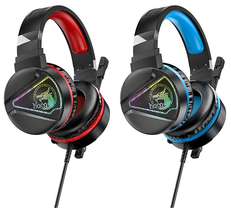 Наушники геймерские проводные aux 3.5 мм USB полноразмерные накладные с микрофоном, светящиеся Hoco W104 для Apple iPhone, Android, ПК, ноутбука