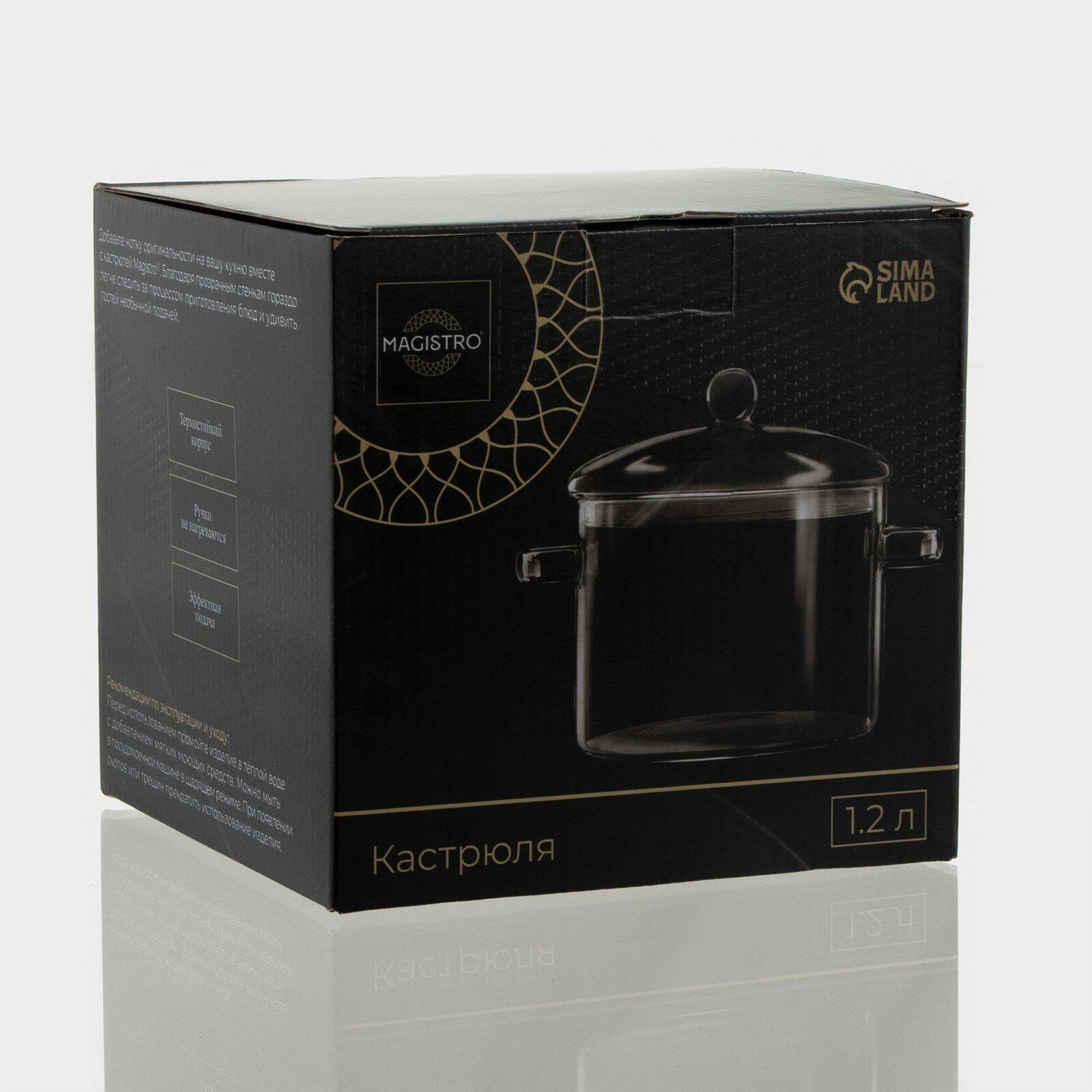 Купить Кастрюля стеклянная с крышкой, для газовой и электрической плиты Magistro «Лия» жаропрочная, 1,2 л