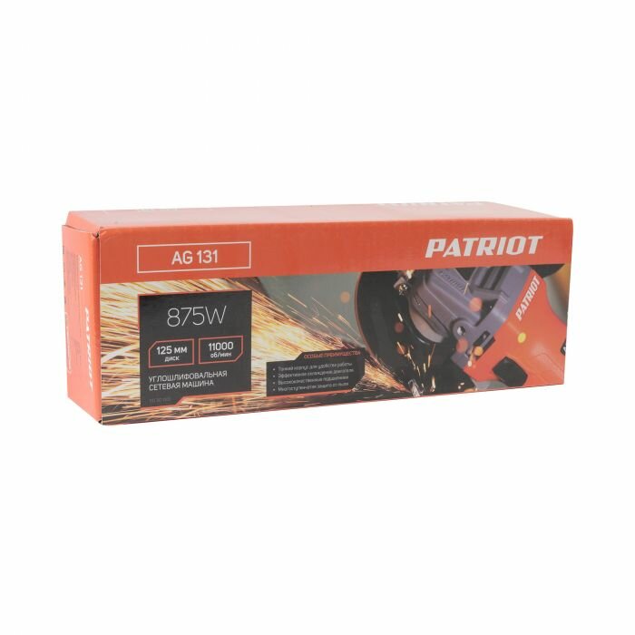 УШМ PATRIOT AG 131, 875 Вт, 875 Вт, 125 мм, без аккумулятора