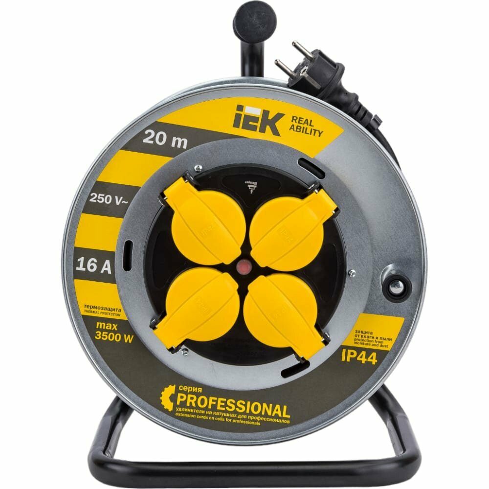 Удлинитель на мет. катушке 4х20м с заземл. 16А IP44 УК20 "Professional" с термозащ. КГ 3х1.5 IEK WKP16-16-04-20-44 (1 шт.)