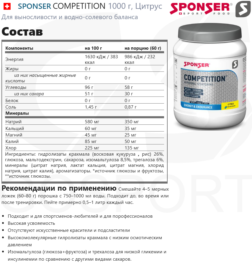 Ниже Вы можете прочитать отзывы на Гипотоник SPONSER COMPETITION 3000 г, Mix, ознакомится с подробными характеристиками, посмотреть интересные обзоры и фотографии на Гипотоник SPONSER COMPETITION 3000 г, Mix.