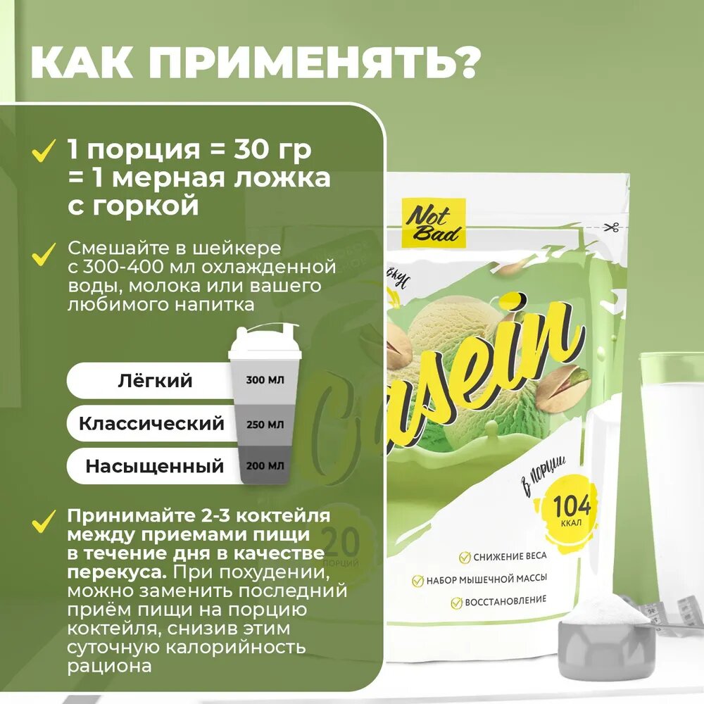 Протеин NotBad CASEIN, 600 гр., фисташковое мороженое