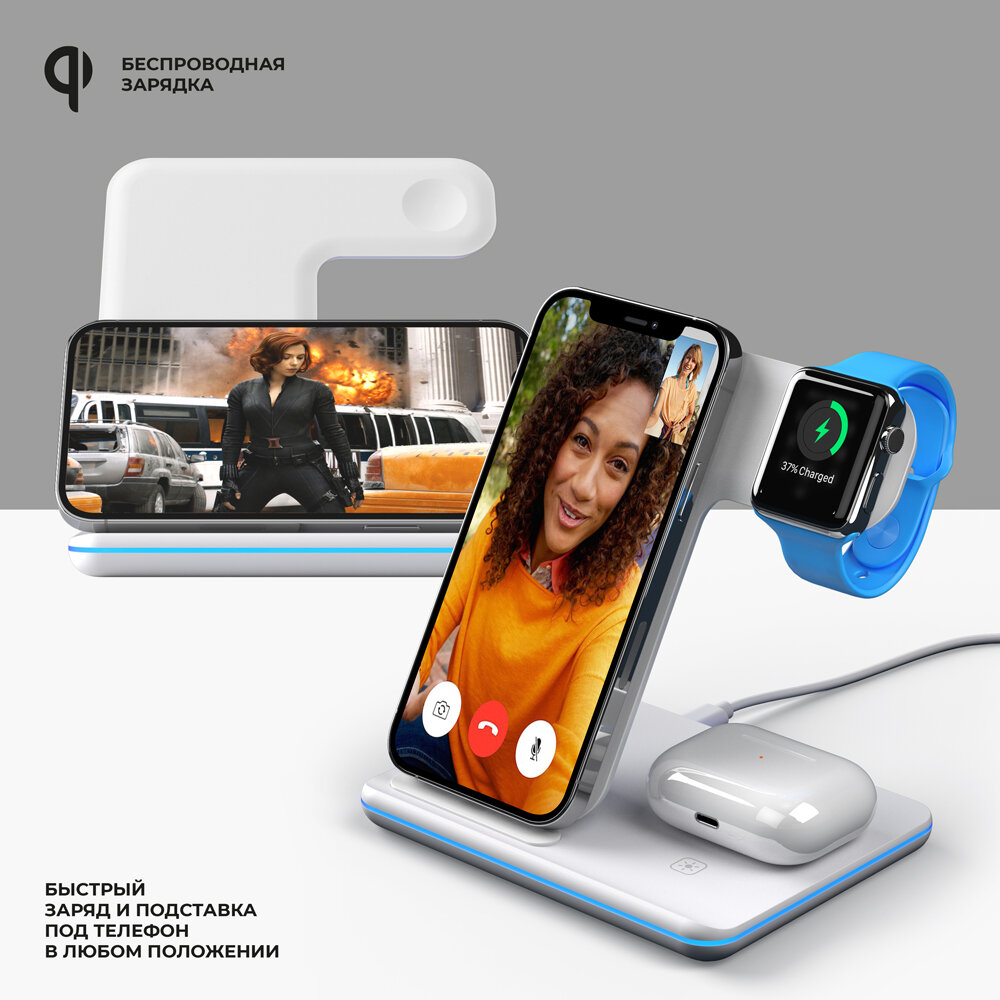 Беспроводное зарядное устройство 3в1 Deppa Charging Stand Neo (D-24017) для Apple iPhone/ Watch/ Air Pods 20W Белый