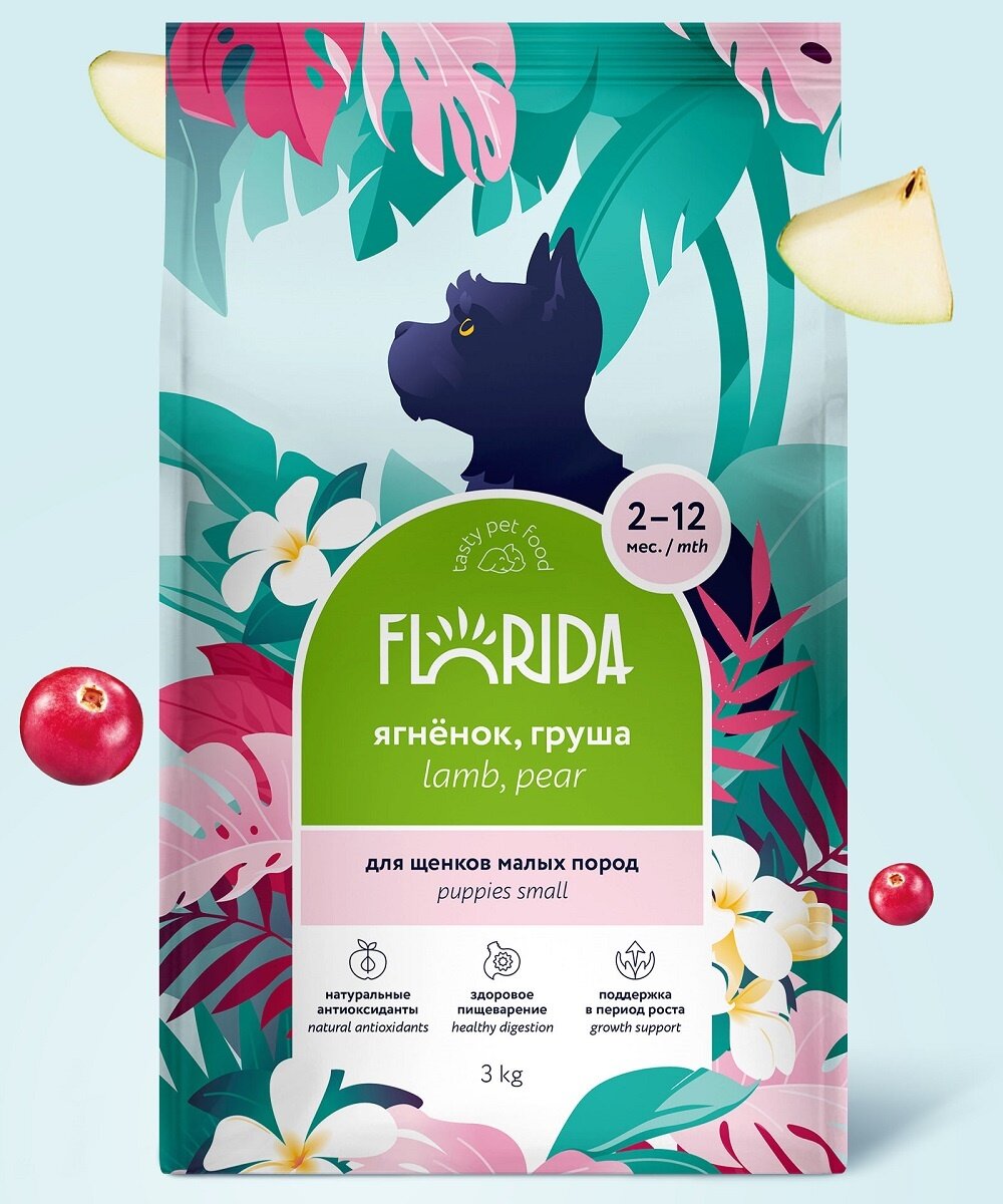 FLORIDA сухой корм для щенков малых пород с ягненком и грушей (3 кг)