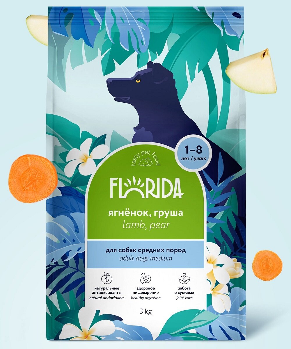 FLORIDA для взрослых собак средних пород с ягненком и грушей (3 кг х 4 шт)