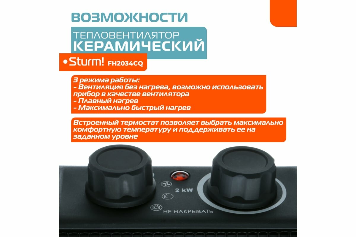 Тепловентилятор керамич.Sturm FH 2034CQ /3 реж. 2кВт/1кВт/обдув, защ. от перегр, датч. опрокид/87401 интересное: