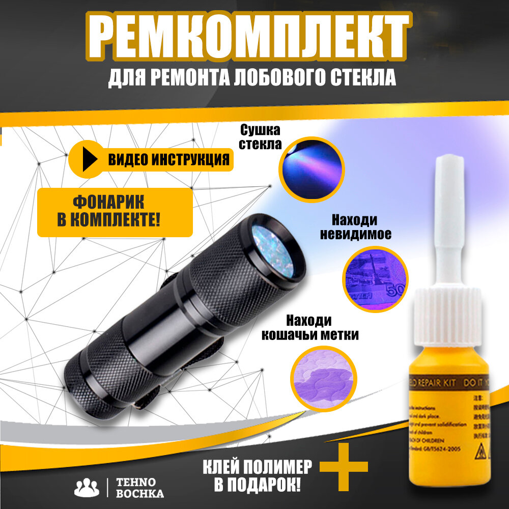 Ультрафиолетовый светодиодный фонарик + клей для авто в подарок!