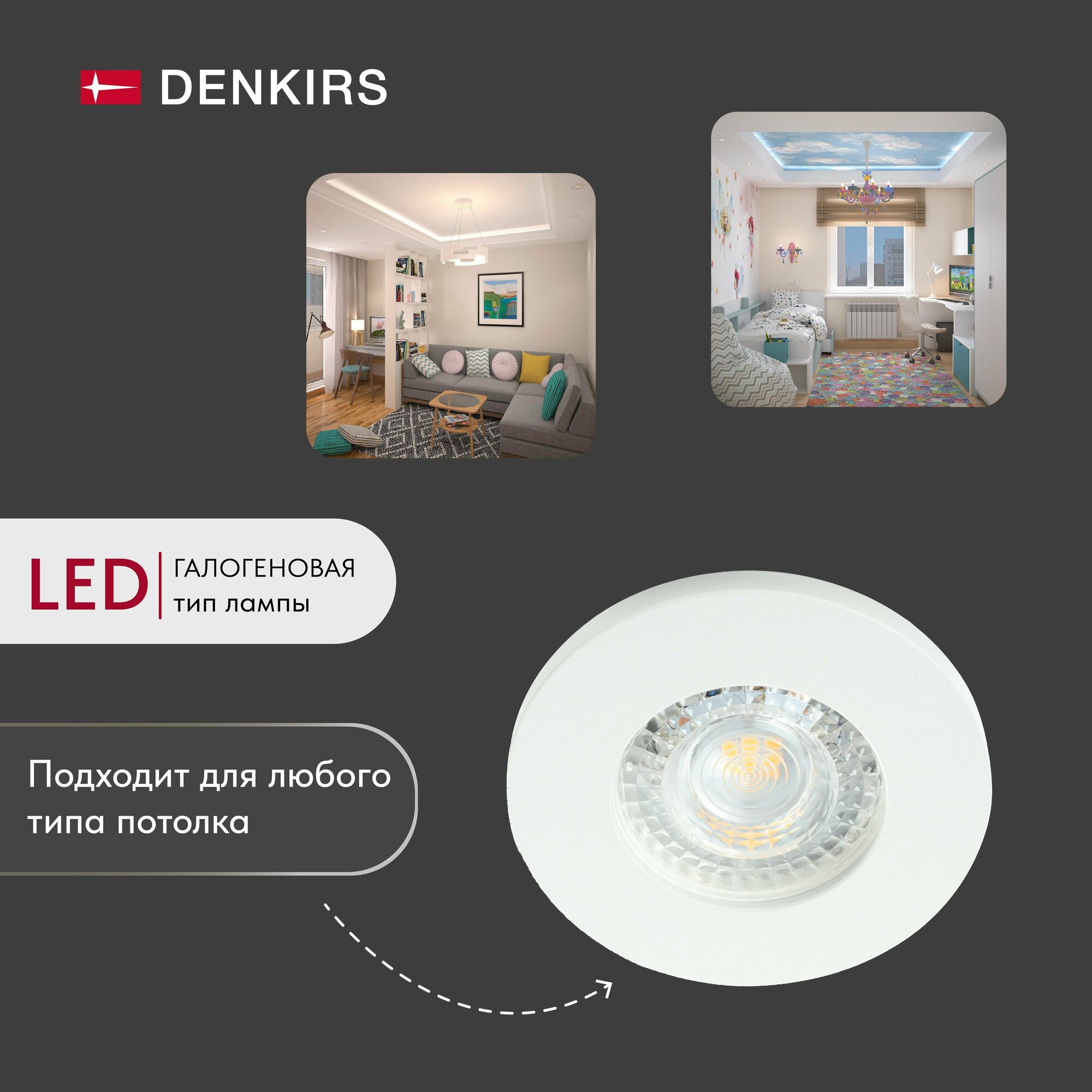 Denkirs (Денкирс) DK2030-WH Встраиваемый светильник, IP 20, 50 Вт, GU10, белый, алюминий