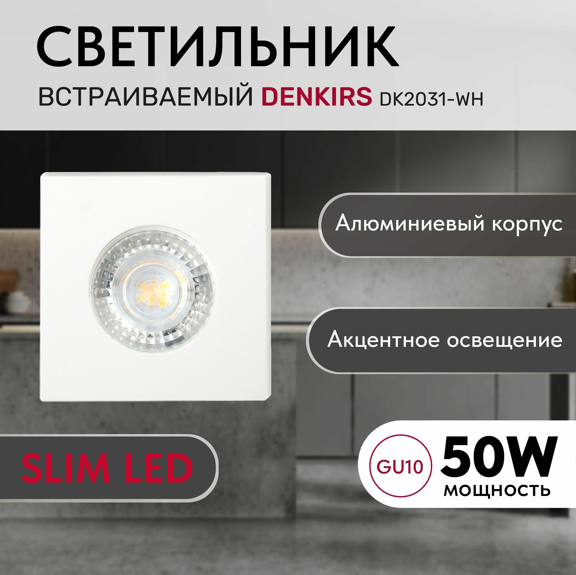 Denkirs (Денкирс) DK2030-WH Встраиваемый светильник, IP 20, 50 Вт, GU10, белый, алюминий
