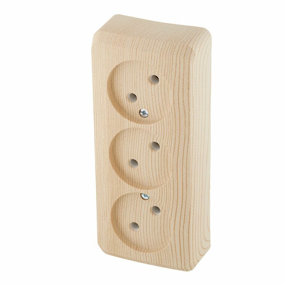 Розетка тройная PA16-009D открытая установка сосна без заземления IP20 интересное: