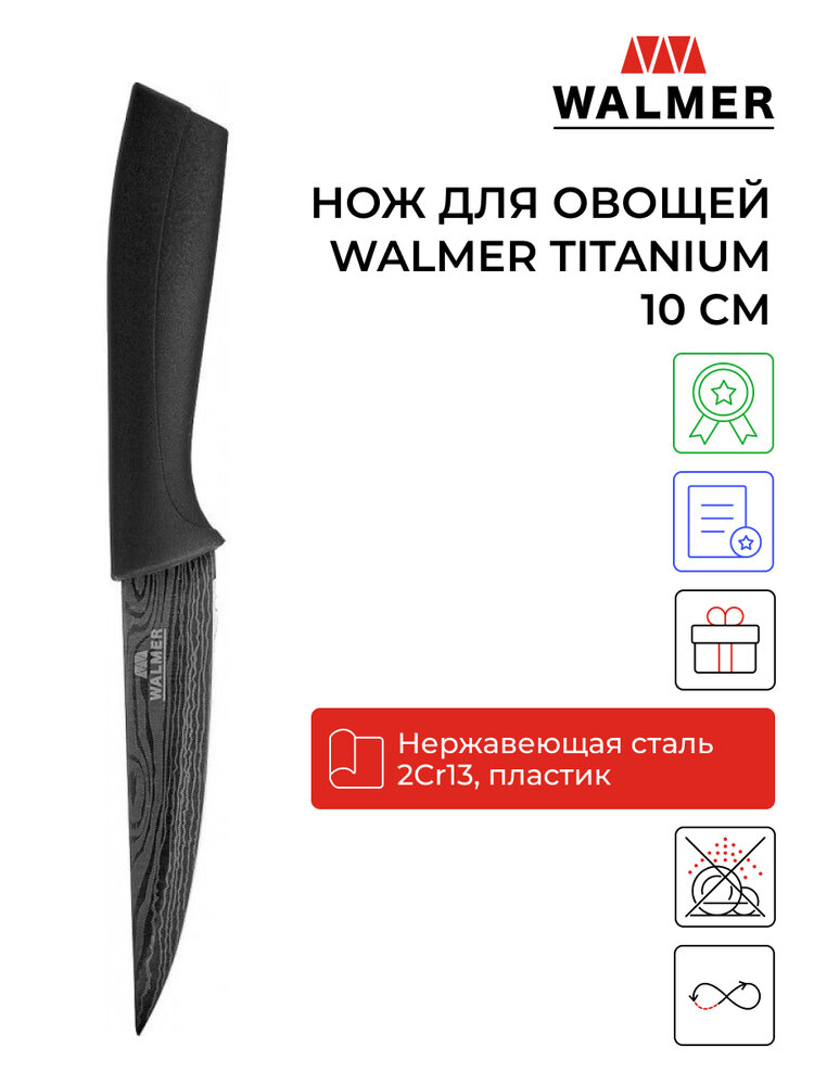 Ниже Вы можете прочитать отзывы на Нож для овощей и фруктов Walmer Titanium 10 см, ознакомится с подробными характеристиками, посмотреть интересные обзоры и фотографии на Нож для овощей и фруктов Walmer Titanium 10 см.