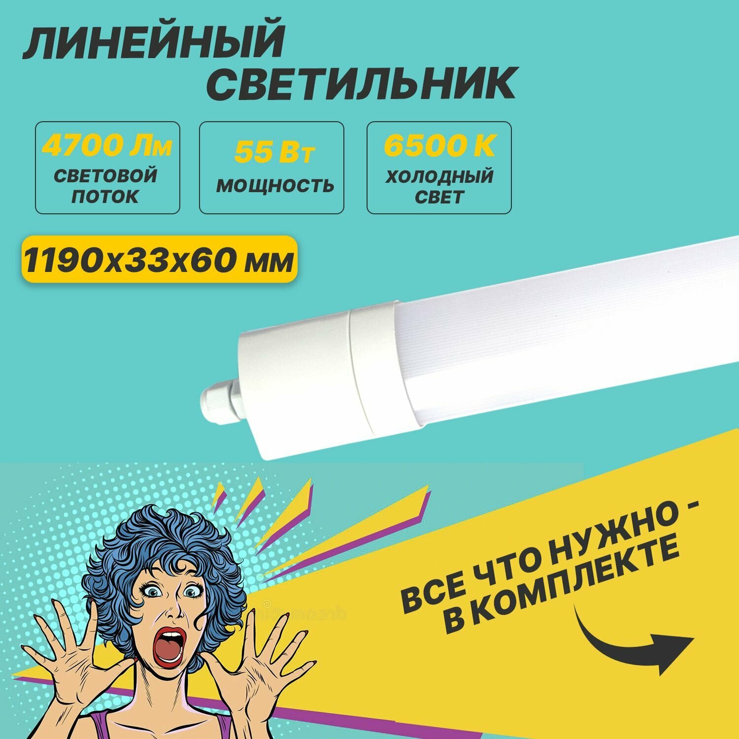 СохранитьСветильник REXANT линейный светодиодный, с выключателем, 55 Вт, белый свет интересное: