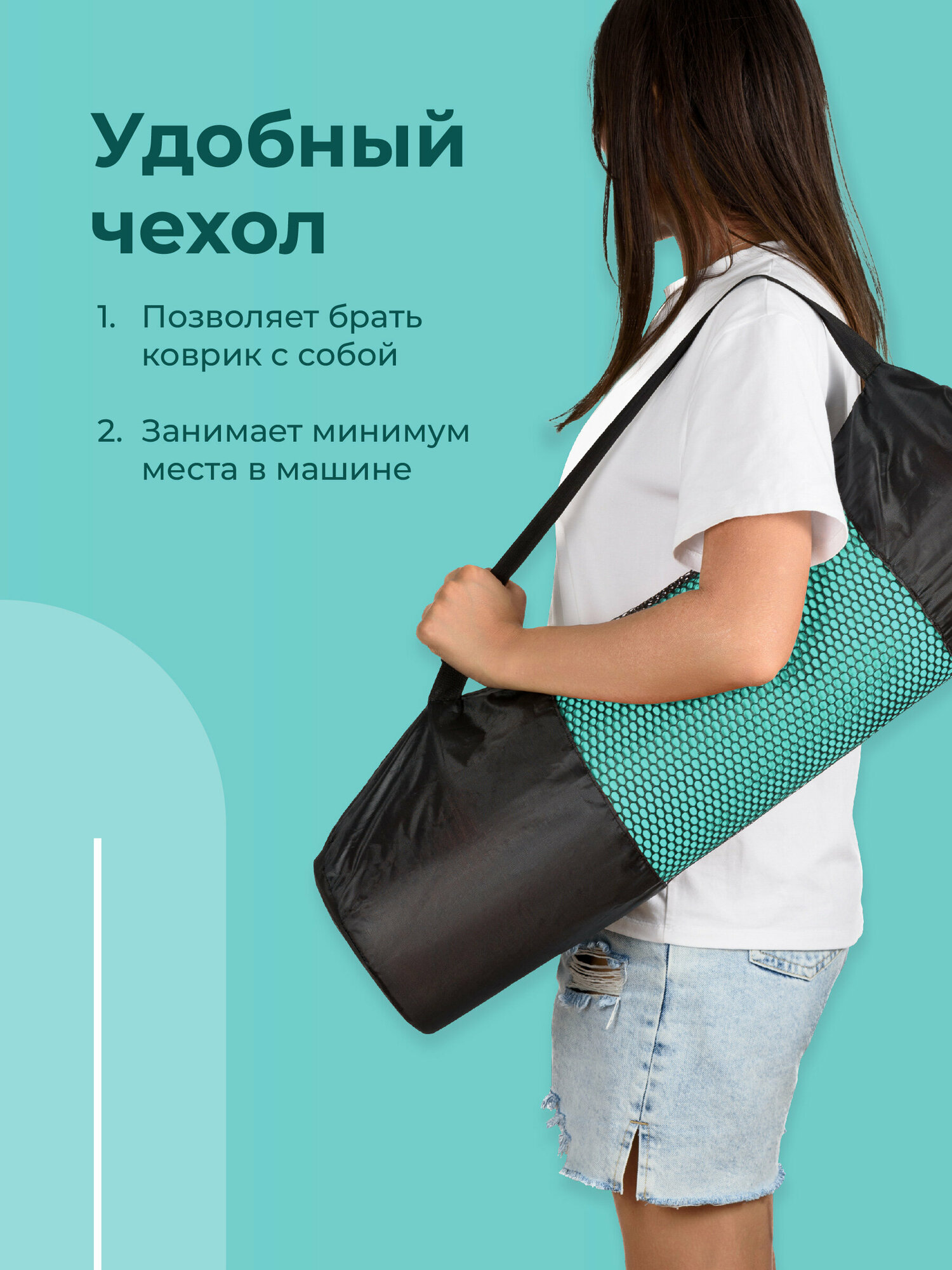 | Плюсы: | Приятная расцветка, не скользит, удобная сумка-чехол и ремешок фиксатор |