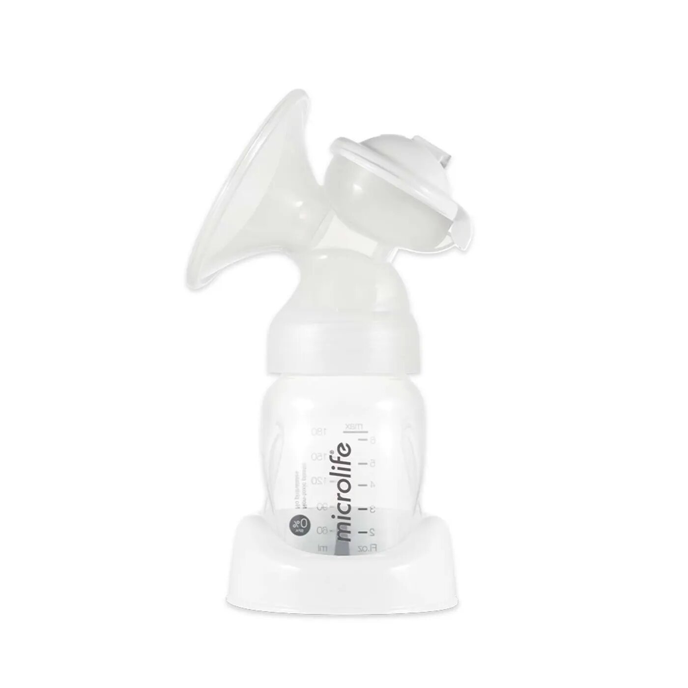 Молокоотсос ручной механический с бутылочкой для кормления ШГ и соской, 150 мл., цвет белый