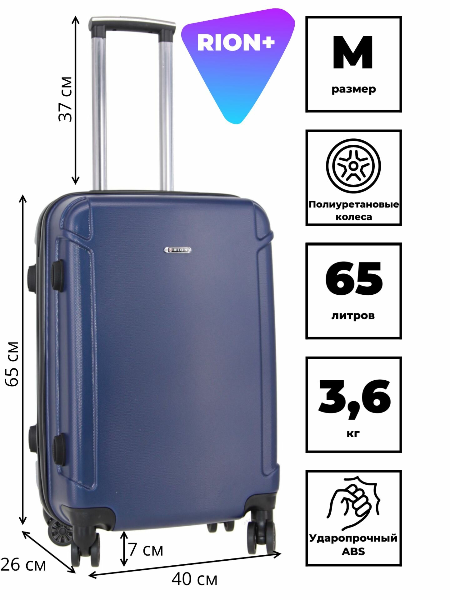 Купить Чемодан Рион+ (RION+) R446, Пластик, M (65 см), 65 литра 4 колеса, усиленный пластик, до 25кг, синий