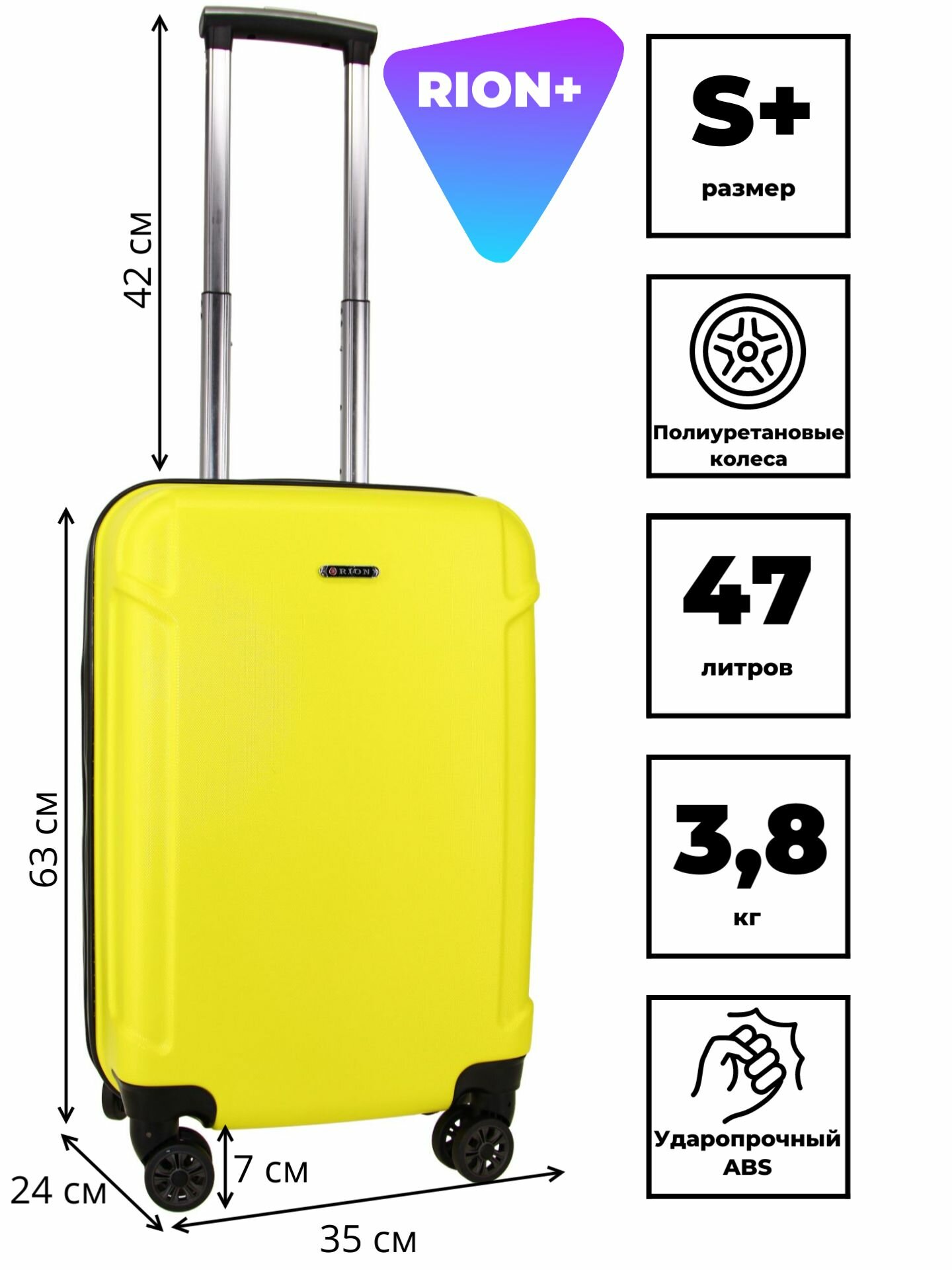 Купить Чемодан Рион+ (RION+) R436-S, Пластик, S (63 см), 47 литра, 4 колеса, ручная кладь, желтый