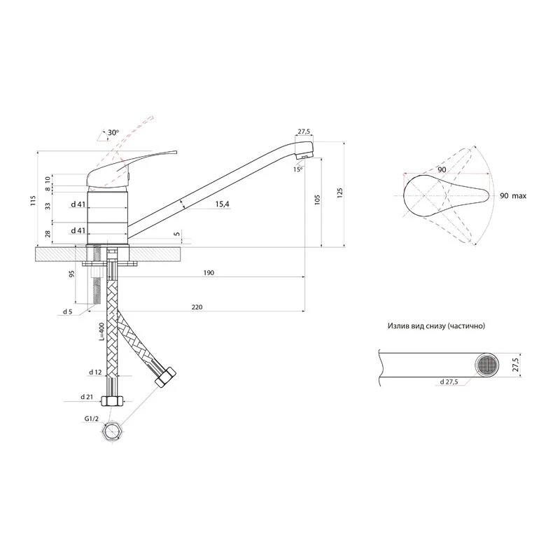 | Длина излива | 210 мм |