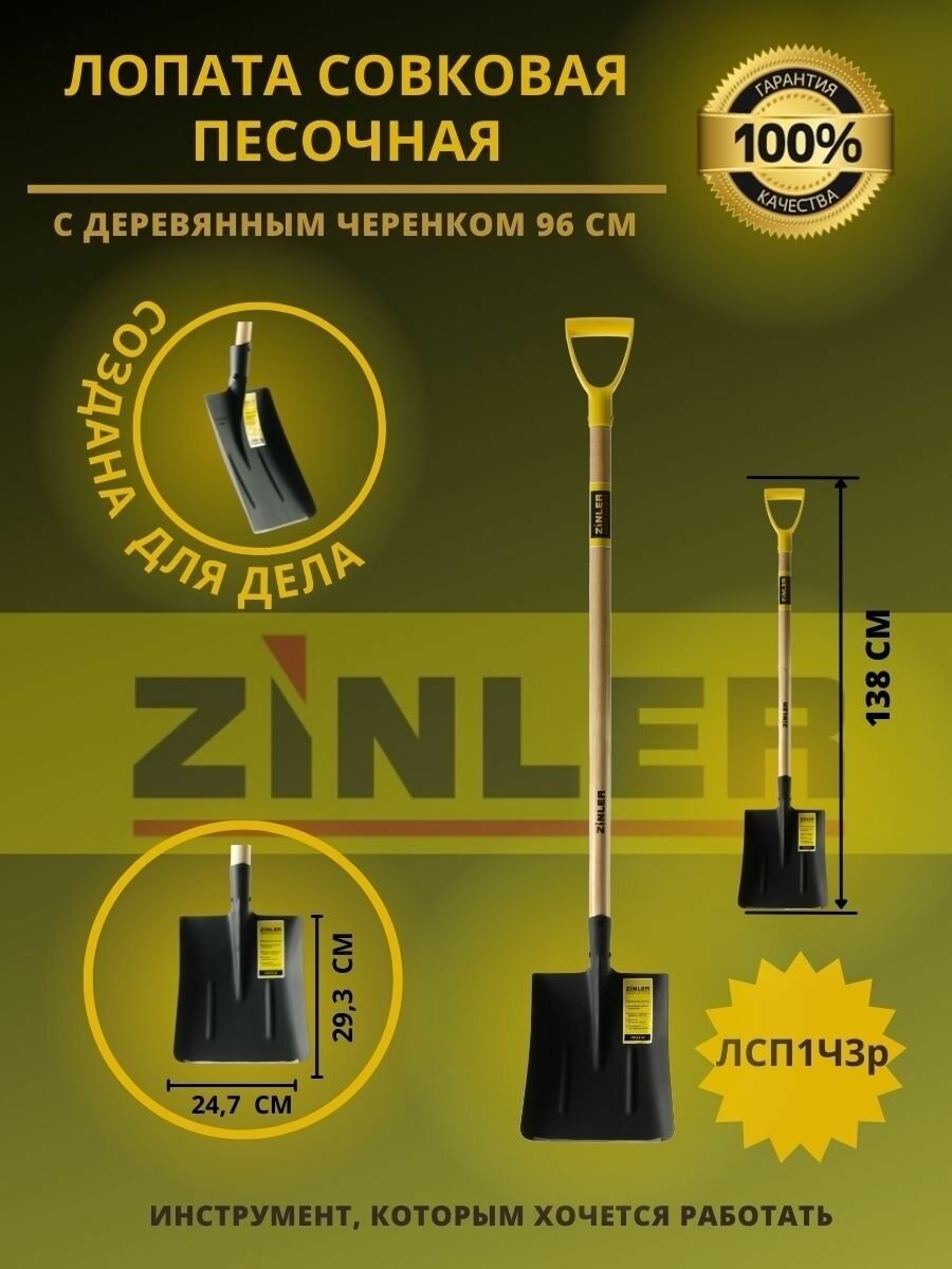 СохранитьZINLER Лопата совковая песочная (тип1) с деревянным черенком 960 мм и ручкой (ЛСП1Ч3р) ZINLER интересное: