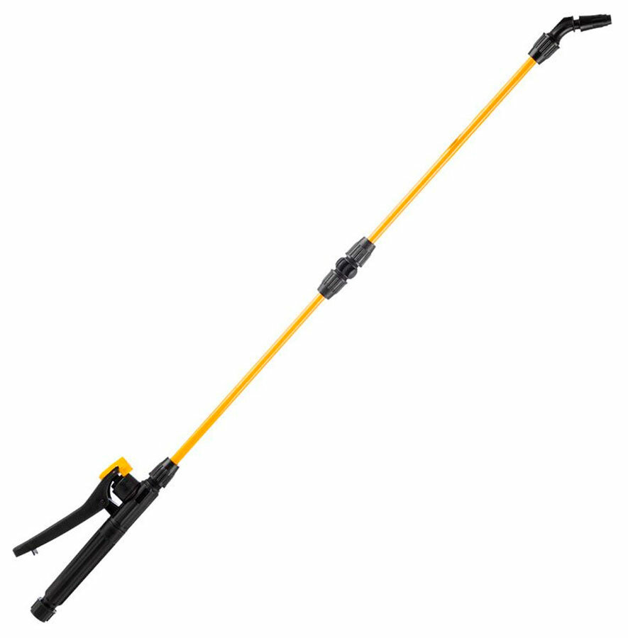 | Минусы: | Выбрал исключительно потому, что в описании было сказано "телескопическая штанга". По факту две трубки по 30 см, итого 60. Для моей цели мало. Эти трубки соединяются пластиковыми муфтами. Одна из них при обжатии соединения лопнула. Не обжимать-значит смириться с подкапыванием через соединения. Фиксатор клапана -не фиксирует, приходится держать его нажатым вручную. Цвет жёлтый, а не оранжевый как в описании. На работоспособность цвет не влияет. Регулировки распыления г нет, или расправляет, или струя. Рад бы вернуть, да с лопнувшей муфтой не примут.