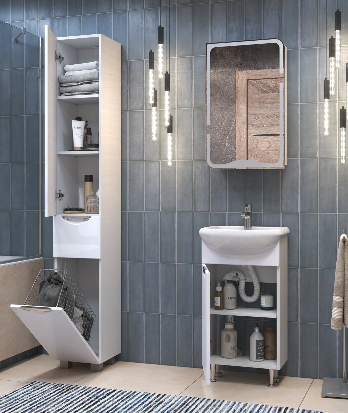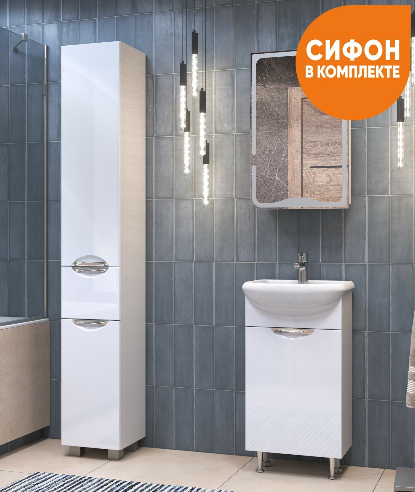Тумба под раковину в ванную Flamenco, Фламенко 504, белая, 47 х 28.2 x 81 см мебель для ванной