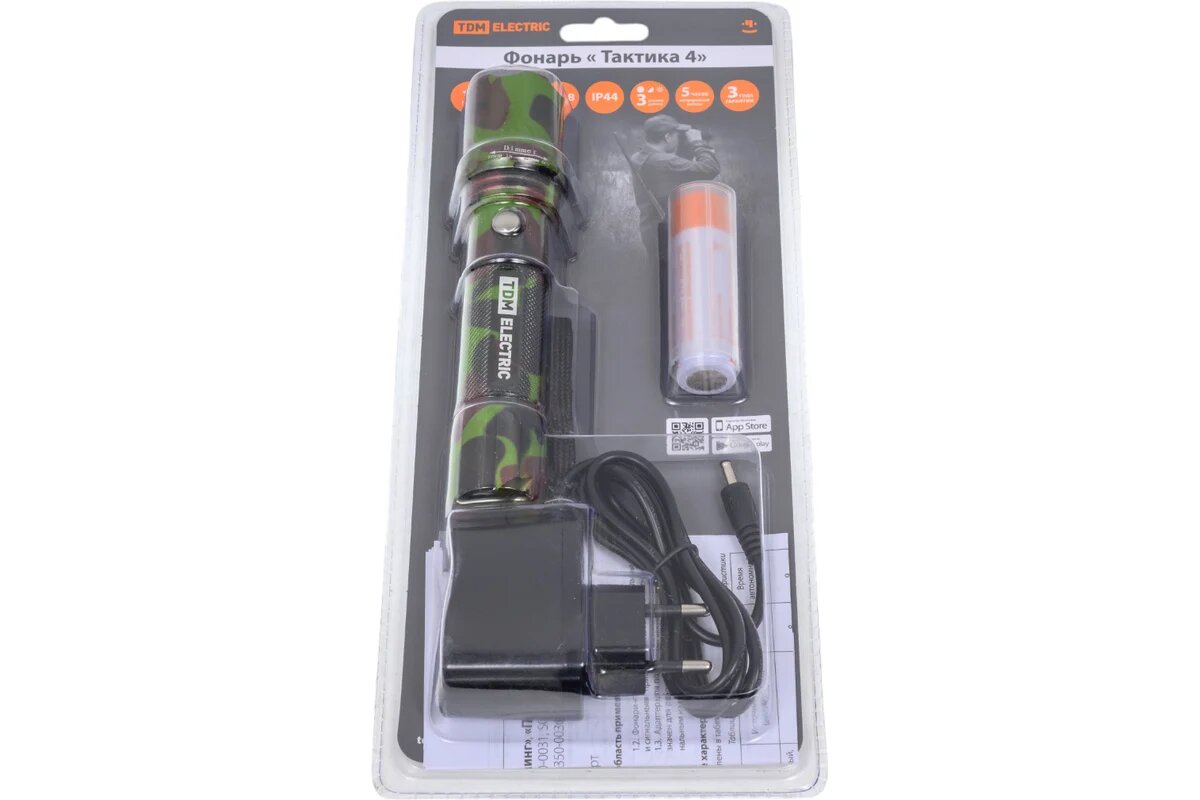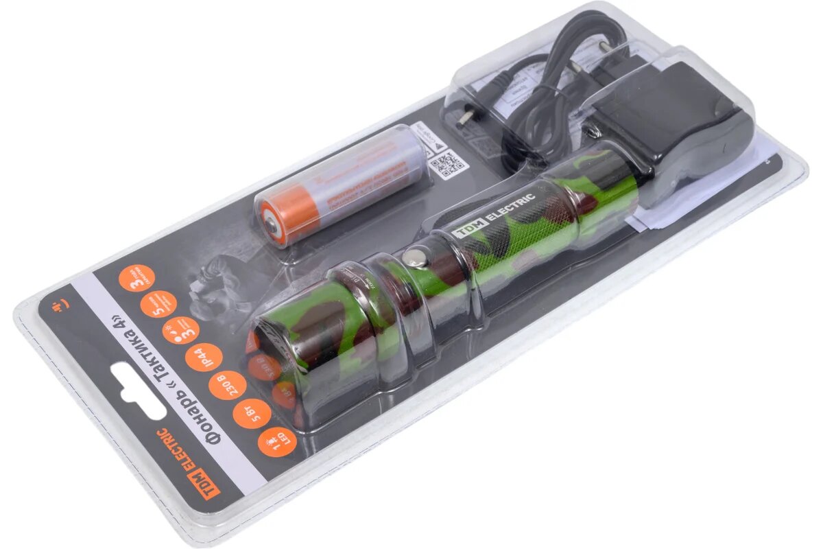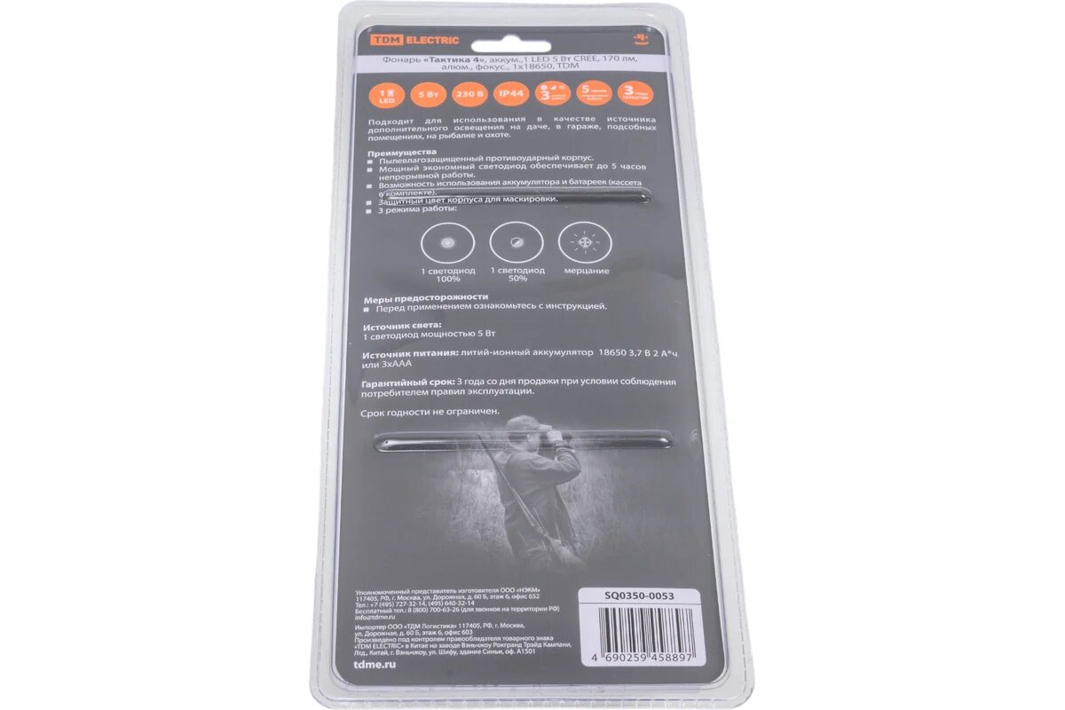 Фонарь Tdm Electric "Тактика 4", аккум.,1 LED 5 Вт CREE, 170 лм, алюм., фокус., 1х18650, SQ0350-0053