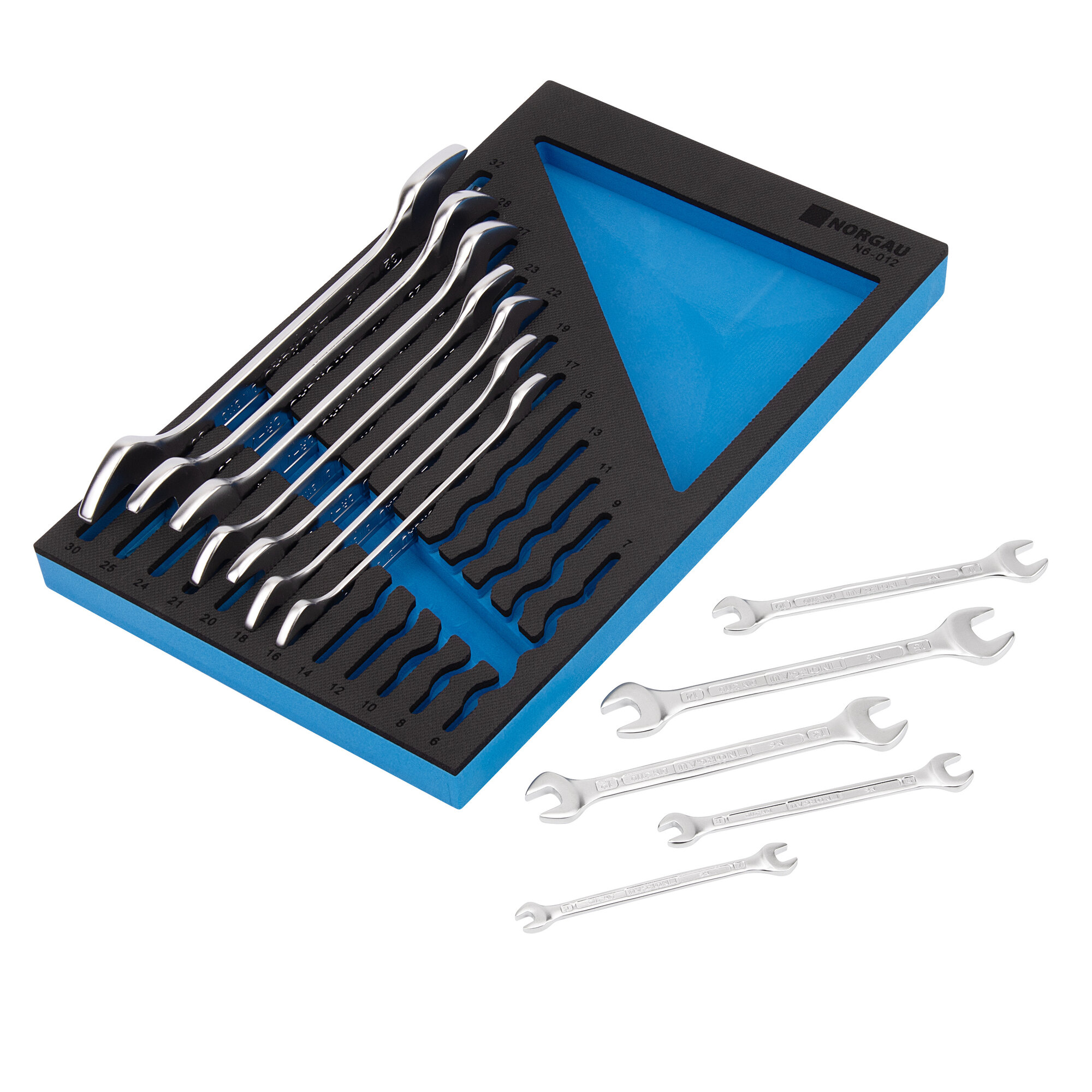 Купить Набор гаечных ключей NORGAU Industrial, двусторонних рожковых, HРM High precision machining, 12 шт в ложементе