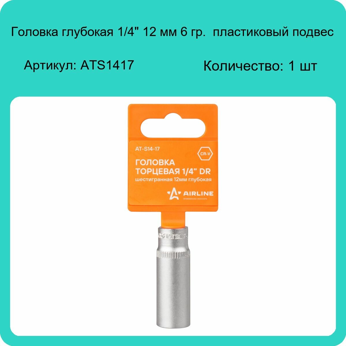 Головка Торцевая 1/4 Dr Шестигранная 12мм Глубокая (At-S14-17) AIRLINE арт. at-s14-17