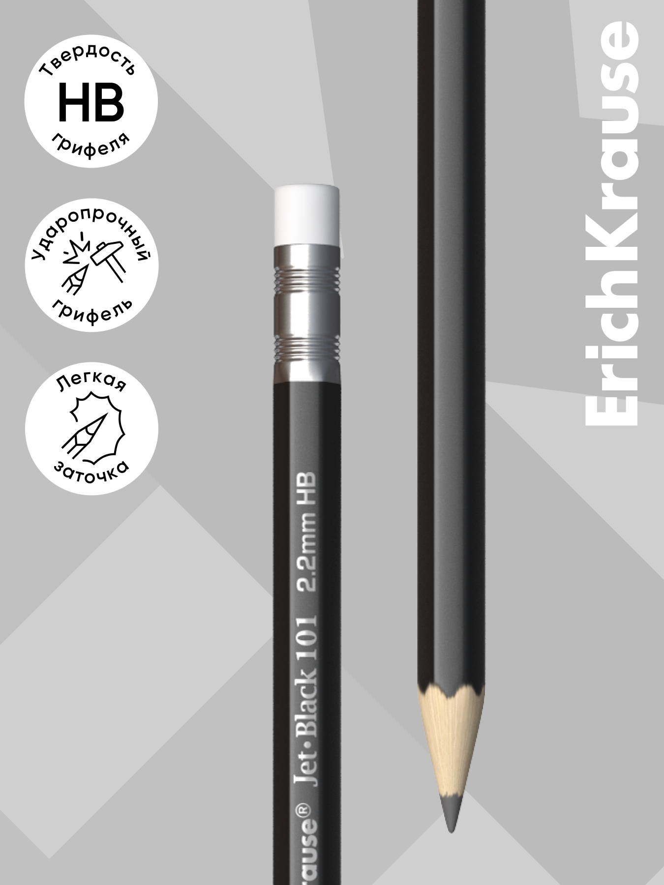 Чернографитный шестигранный карандаш с ластиком ErichKrause Jet Black 101 HB (в блистере по 4 шт.) интересное: