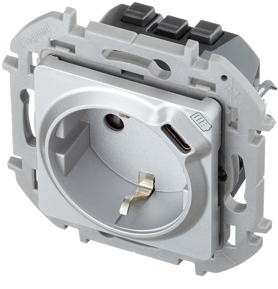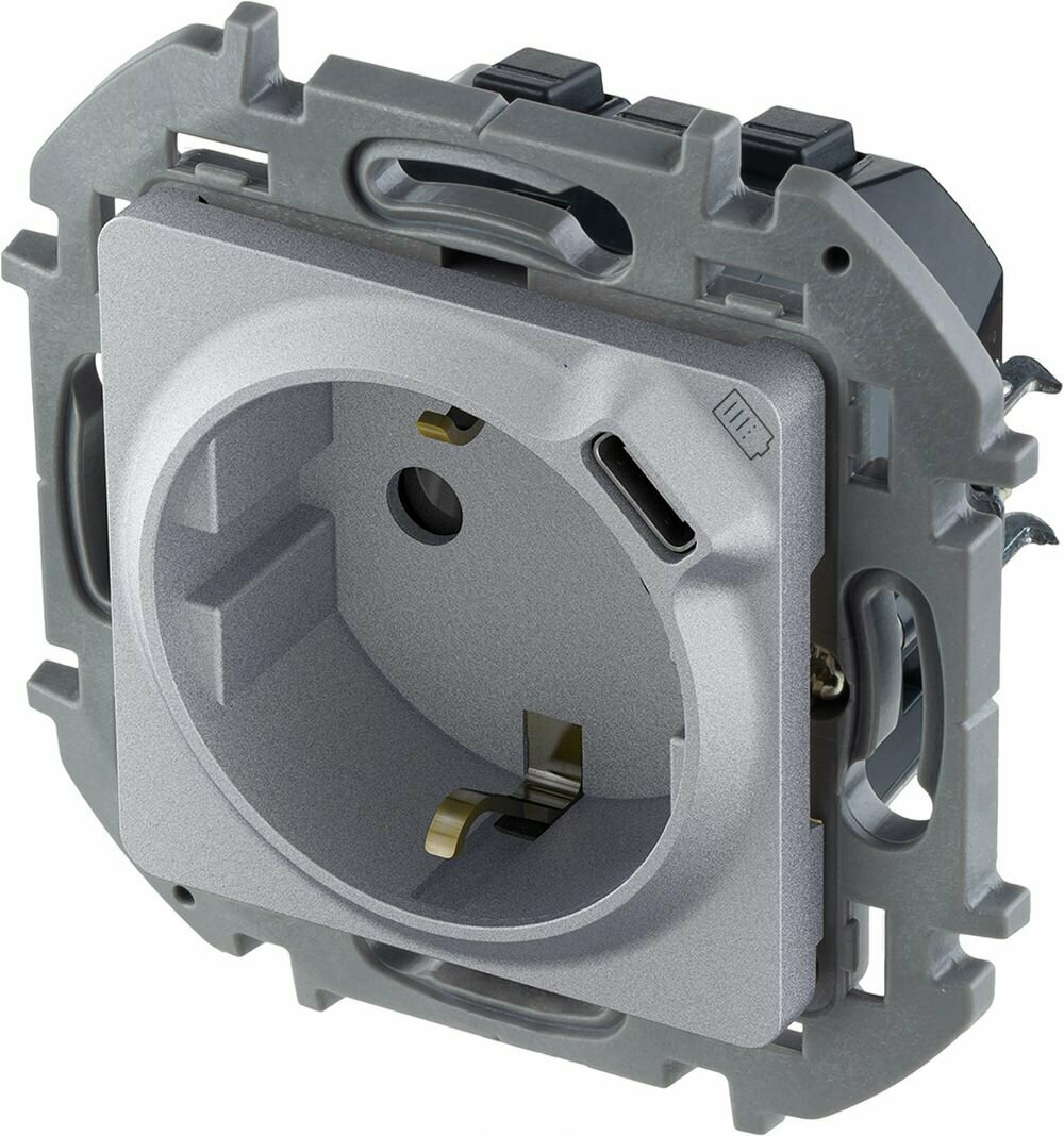 1 шт. Legrand INSPIRIA Алюминий Розетка 2К+З немецкий стандарт 16А 250В со встроенным зарядным устройством USB C 1.5А 5В, 673772
